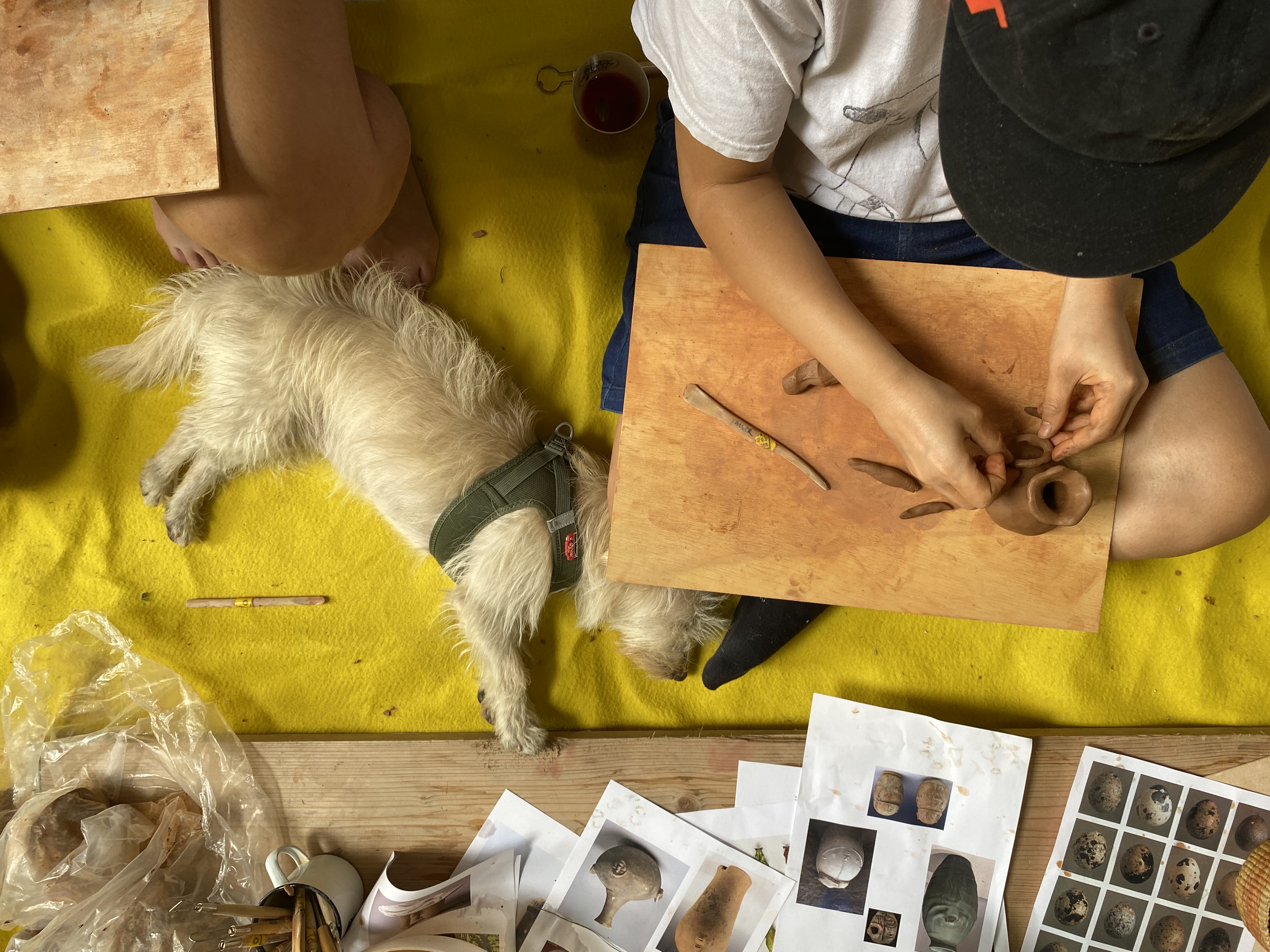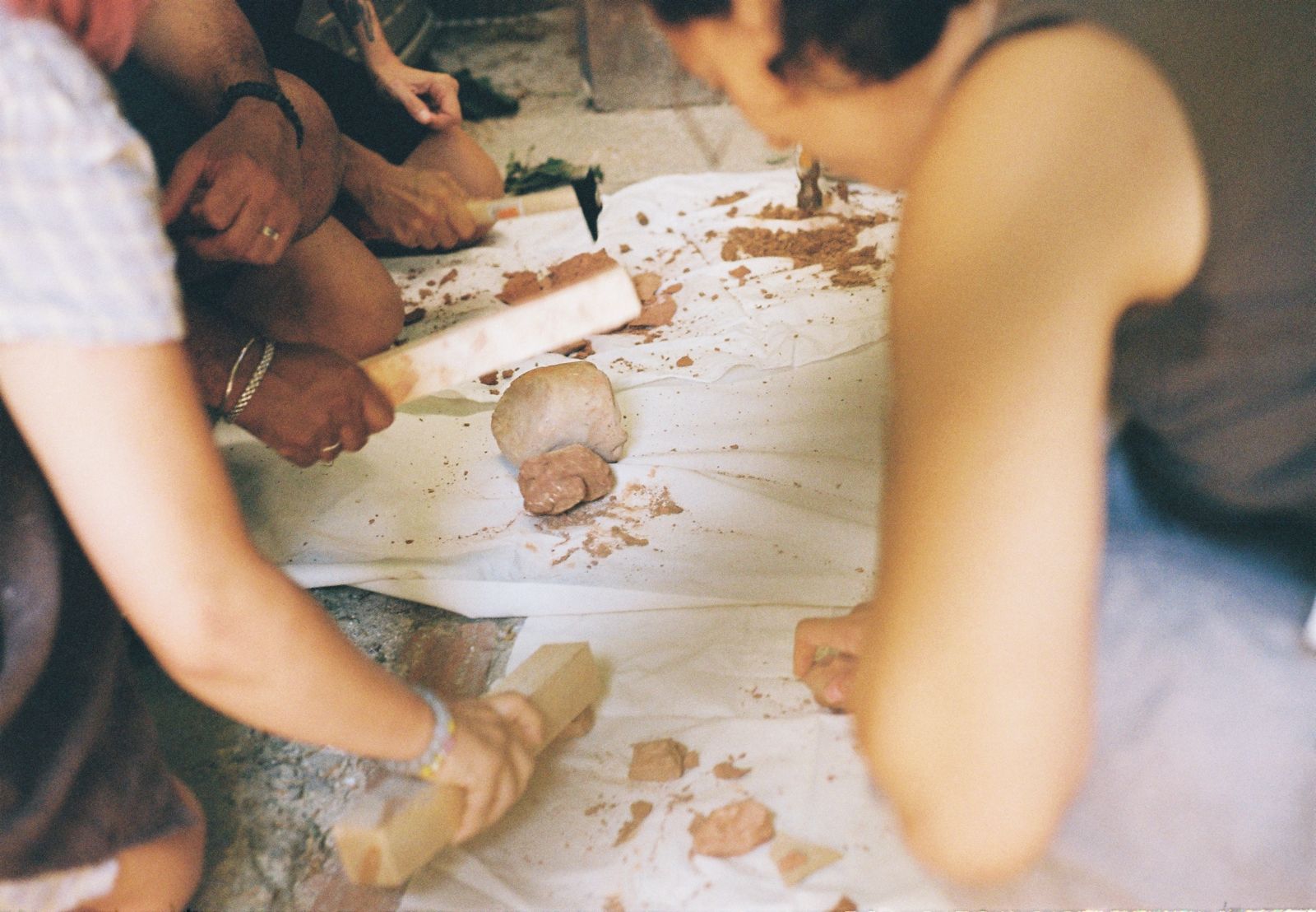 For three consecutive Saturdays, we proposed a drift between material action, reading, and collective reflection, working with clay as a common body and porous container of griefs in its material, symbolic, and situated con-formation.